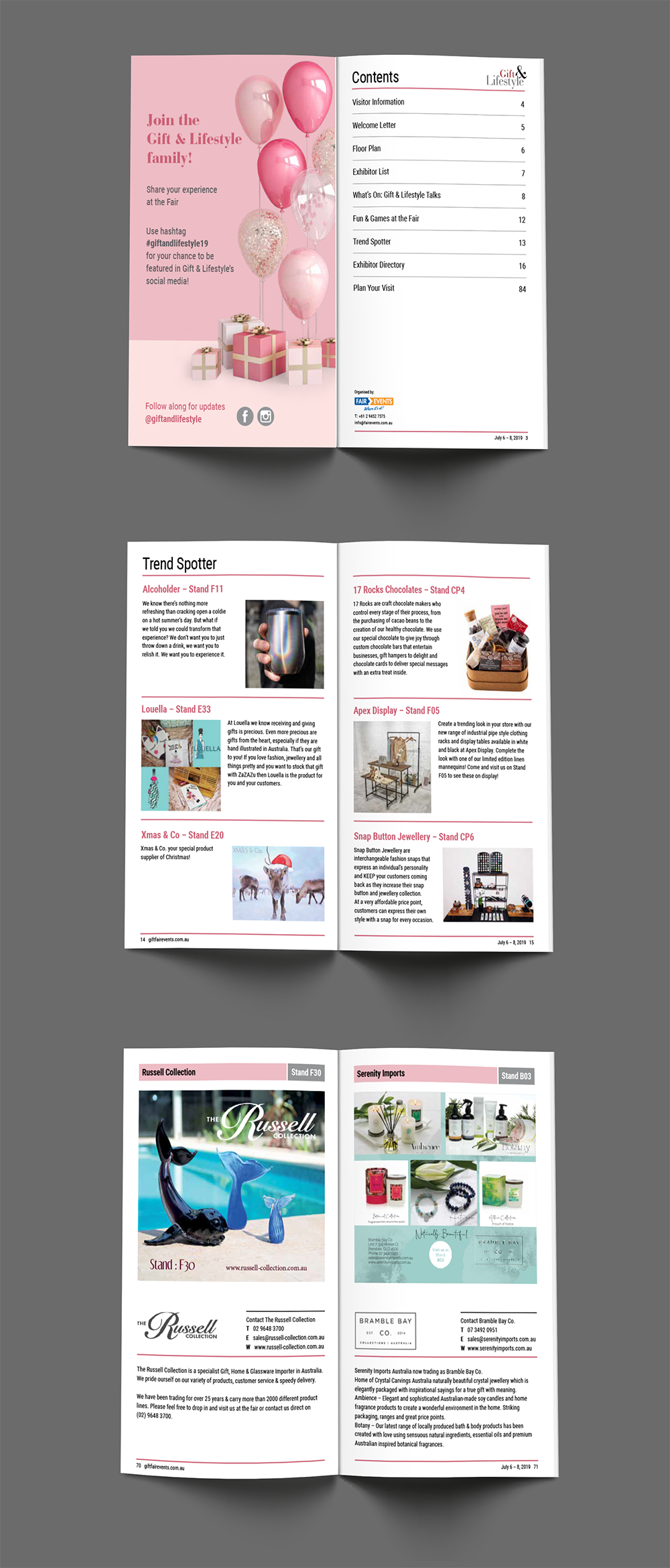 After the success of Gift & Lifestyle in Brisbane, I designed a prospectus for Spring Gift & Lifestyle, to be held on the Gold Coast, Queensland.