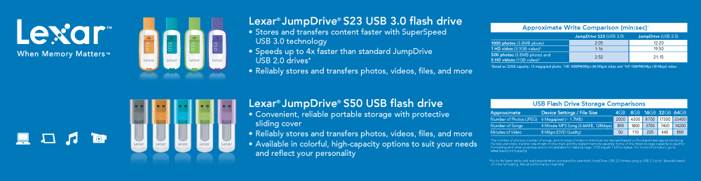 I have designed, updated, reformatted and resized numerous brochures for Lexar, all of which require strict adherence to style guides. A lot of material was sent to us from overseas, requiring updating before printing in Australia, so I worked from existing artwork as well as designing new material. Work included instore signage and point of sale material, brochures, flyers and packaging. The work included icon creation, product mockups, retouching of images, design and artwork for printing and web.