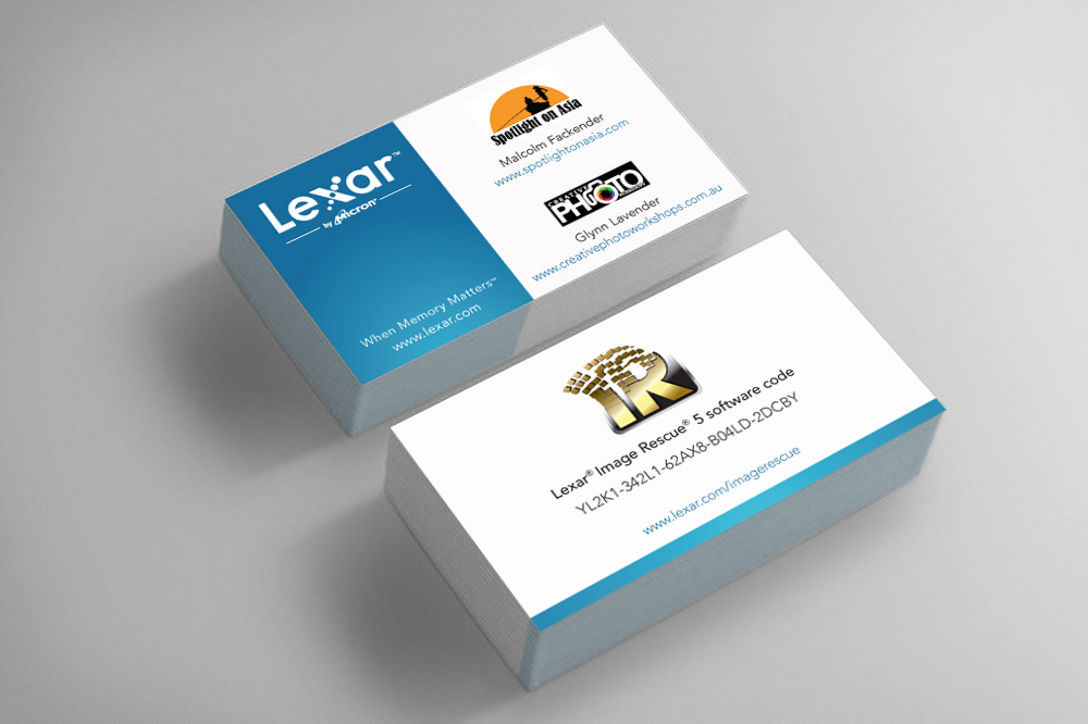 Lexar Business cards – with data-merged finished artwork for digital printing with each card including a unique software code to redeem a special offer online