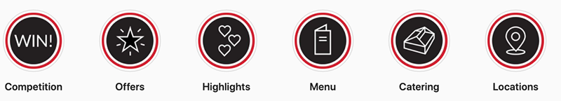 I also added Highlights for relevant topics including Offers, Competitions, Highlights, Menu, Catering and Locations, allowing users to be able to easily access this information on the profile page (see below), and allowing Stories with strong engagement to utilised for a longer period.