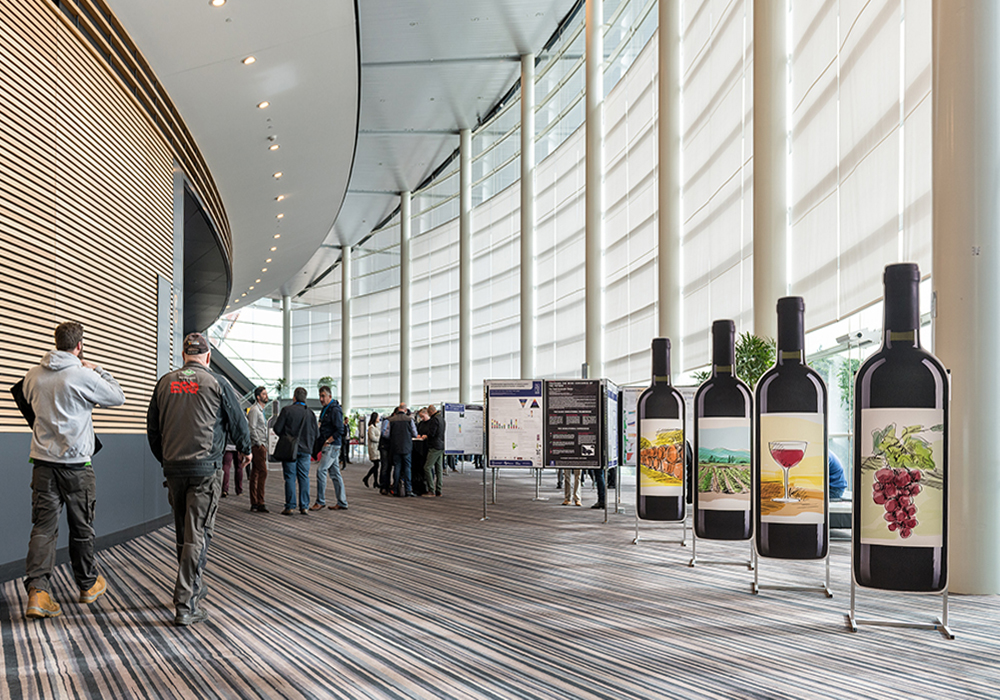 I created the wine making pictures in Illustrator and Photoshop using watercolour brushes. I then used them on the wine labels of four bottles, following the sequence of winemaking. This concept is emphasised in the animated gifs, where the bottles appear on the table in the relevant order. The imagery was used to promote the event in both digital (social media, industry websites and SEM) and printed media (trade magazines, regional press, wayfinding and event signage).